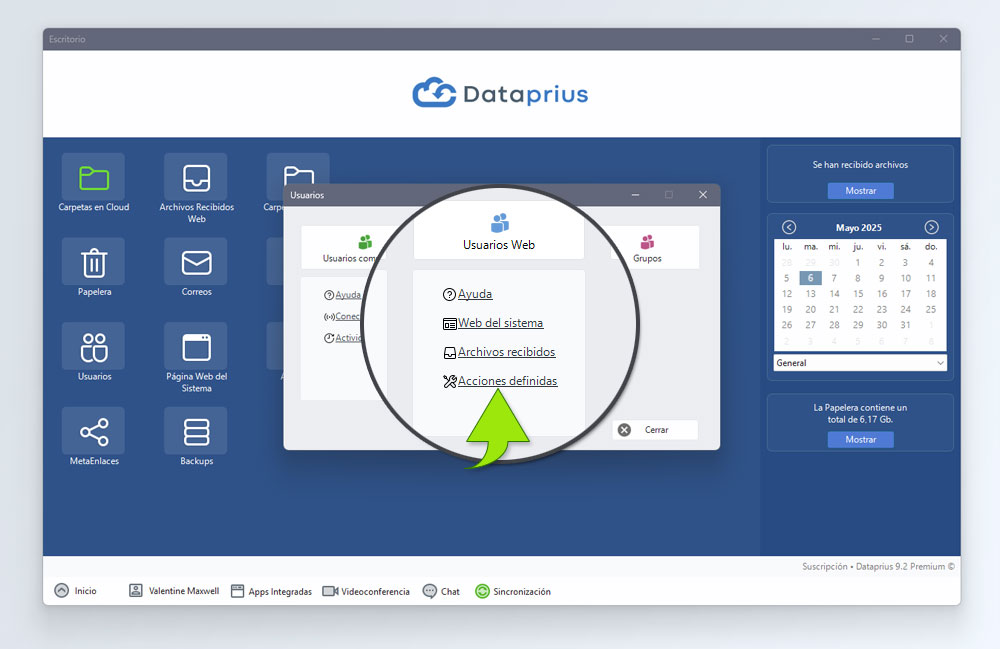 - Acceder a su Historial de acciones sobre los archivos y carpetas del sistema.